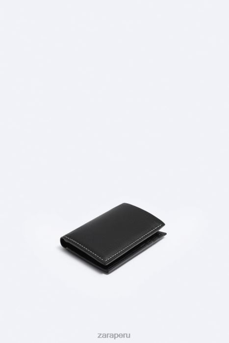 cartera y tarjetero en color liso. compartimento principal con bolsillo para billetes. Tres ranuras para tarjetas, en ambos lados. pespuntes contrastantes.alto x largo x ancho: 3 x 3,9 x 0,6 pulgadas (7,5 x 10 x 1,5 cm)