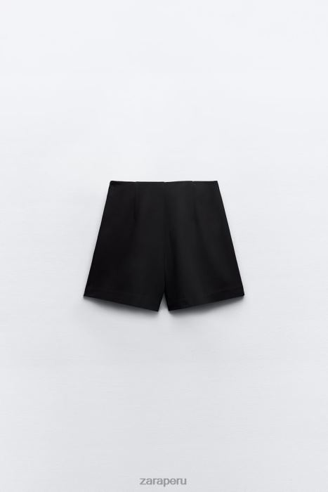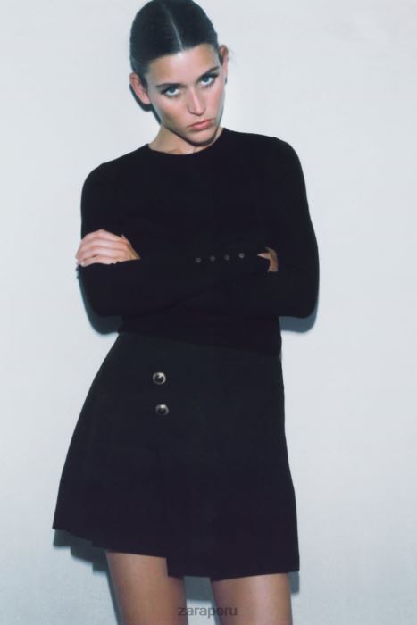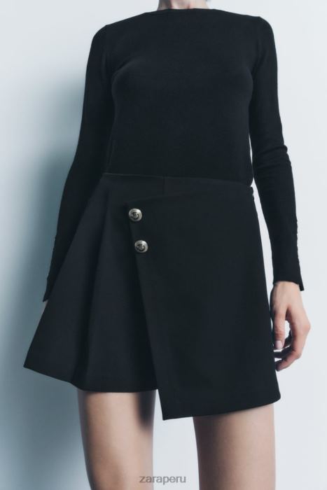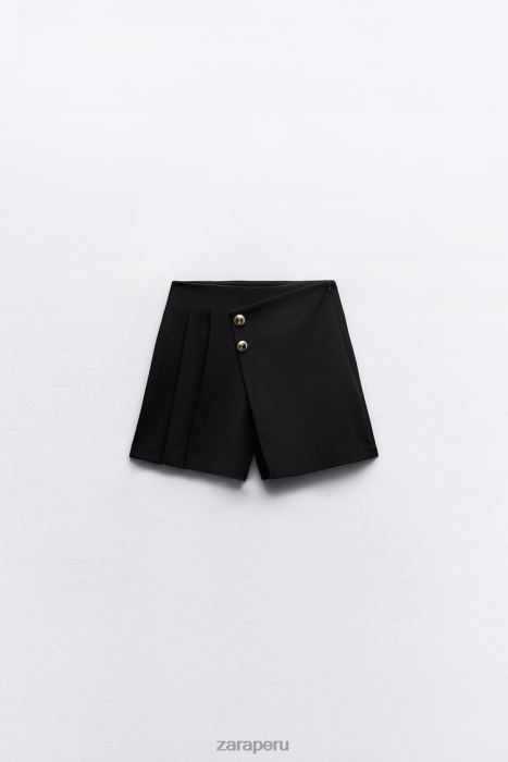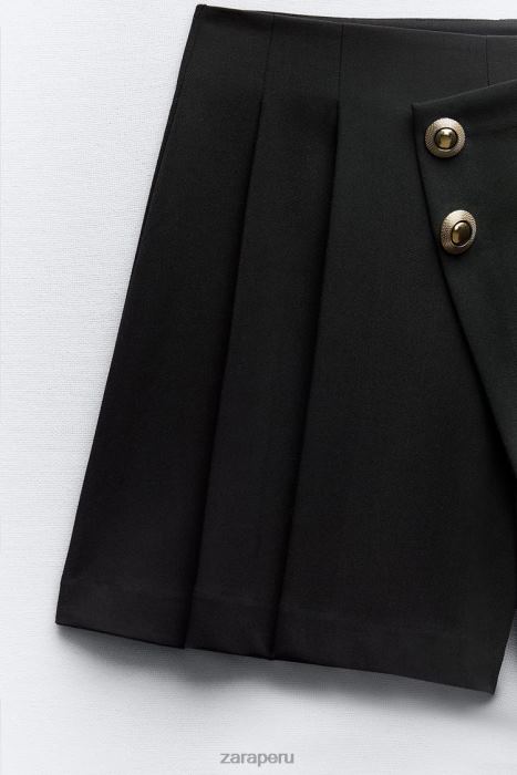 Falda pantalón de talle alto con pliegues delanteros y falsos botones. Cierre de cremallera lateral oculta en costura.
