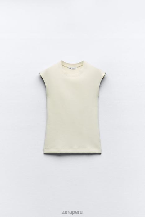 Camiseta sin mangas en mezcla de algodón. Camiseta de tirantes con escote redondo de canalé.