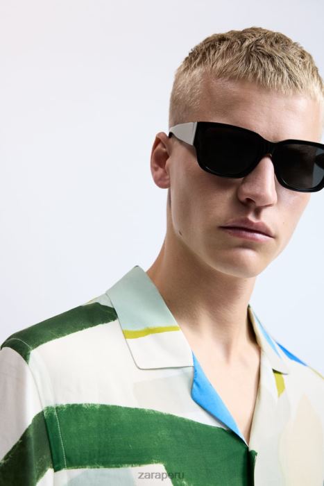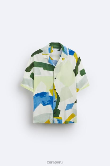 Camisa de corte relajado confeccionada en viscosa. cuello italiano y manga corta. cierre de botón frontal.