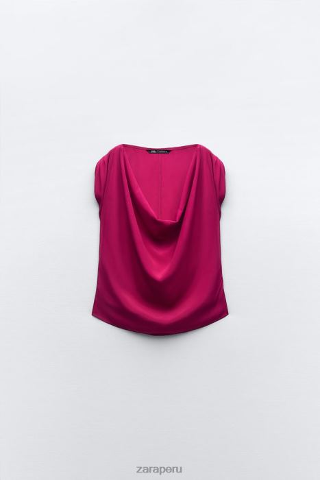 Zara mujer top drapeado BDP8J403 ropa frambuesa