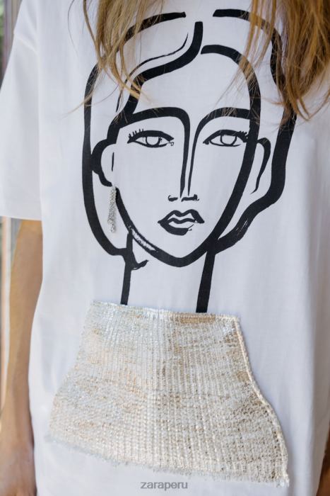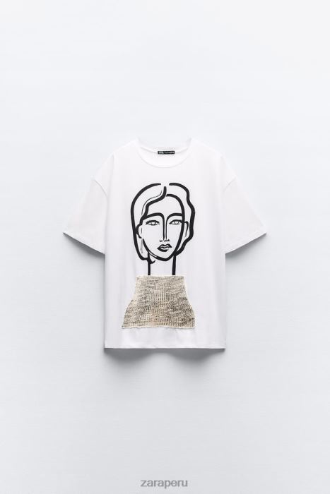 corte holgado - cuello redondo - largo normal - manga cortacamiseta de algodón de manga corta con cuello redondo. Estampado de niña en delantero con tricot y aplique de joya.