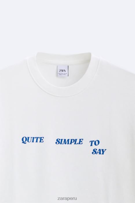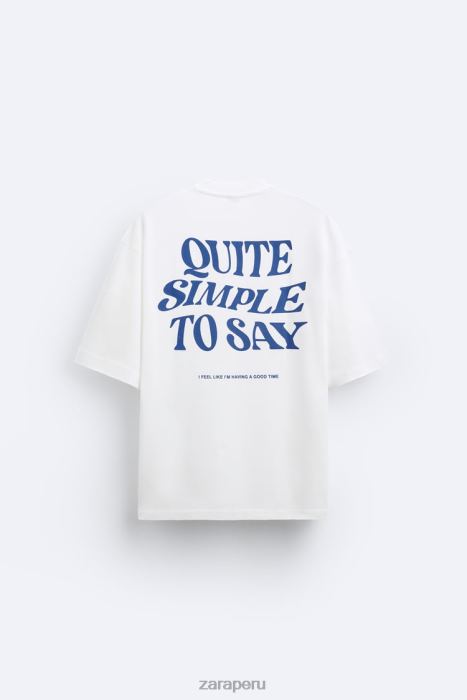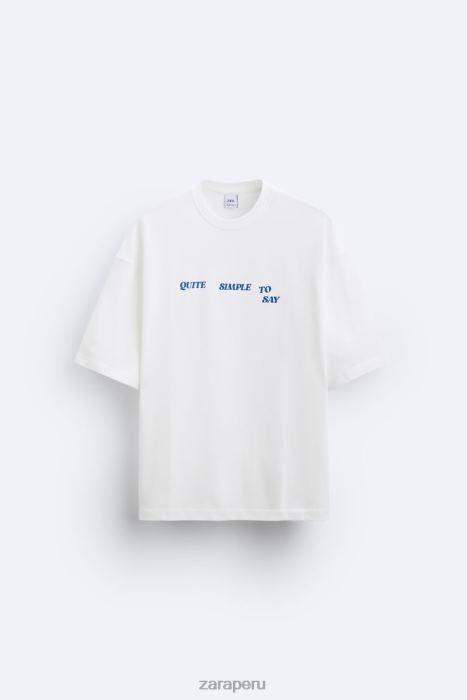 Camiseta de corte amplio con cuello redondo y manga corta. Impresión de texto en contraste frontal.