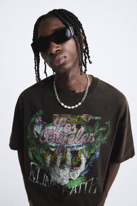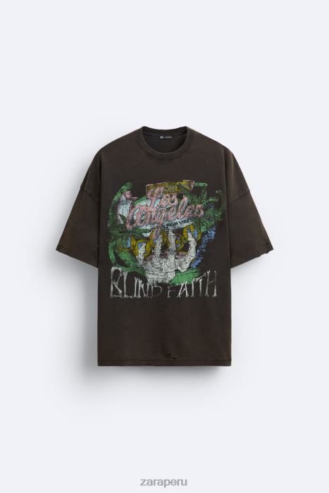 Camiseta de cuello redondo y manga corta. estampado frontal en contraste. Efecto lavado vintage.La prenda tiene un aspecto único gracias a su especial proceso de lavado. por este motivo, el color puede diferir ligeramente del visto en la foto.