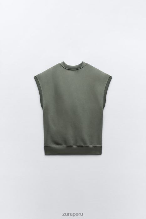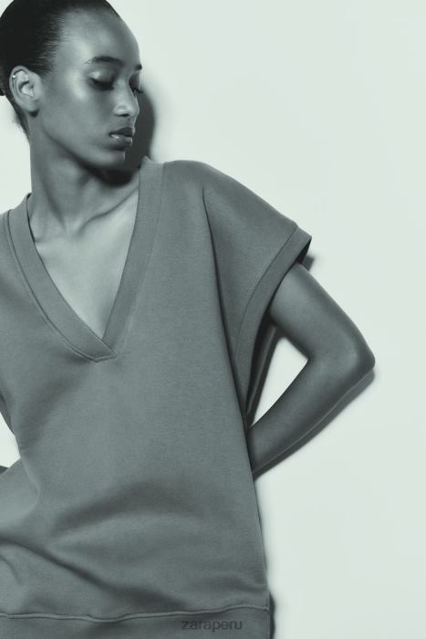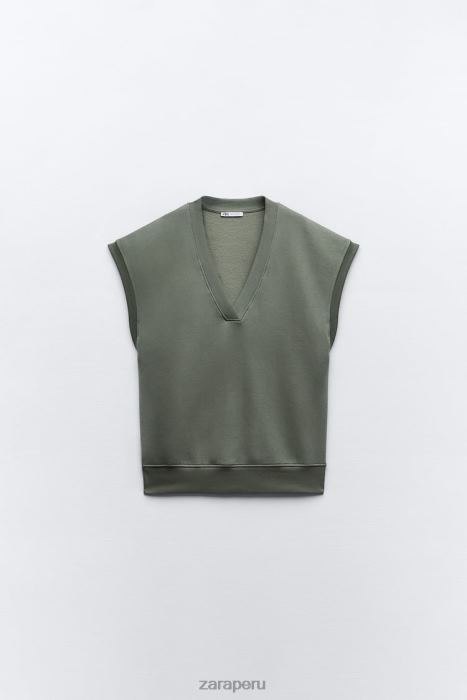 Chaleco confeccionado en tejido mezcla de algodón. Escote en pico y manga caída. Ribete de canalé tonal.