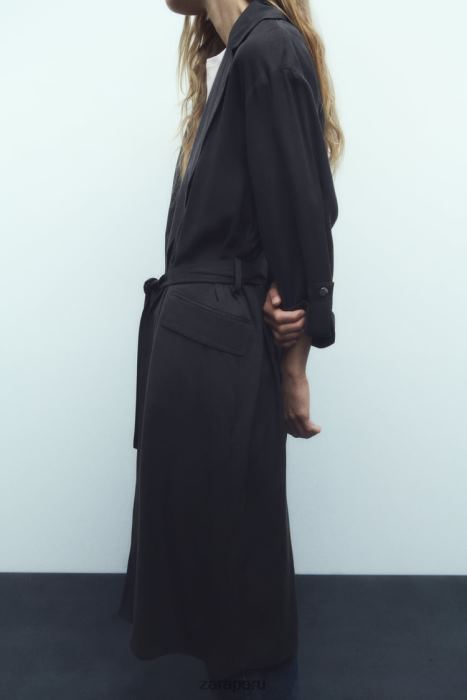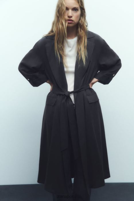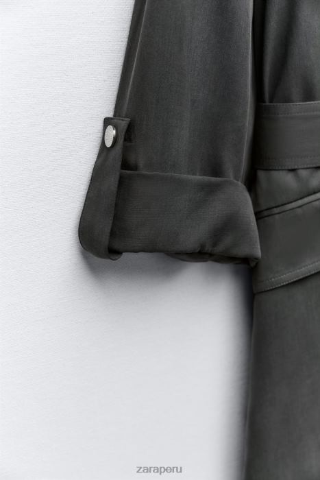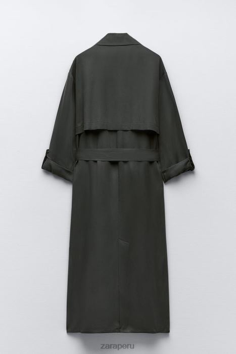 gabardina con cuello solapa y manga larga vuelta con tirantes abotonados. bolsillos delanteros con solapa. hendidura trasera. cierre automático del cinturón.