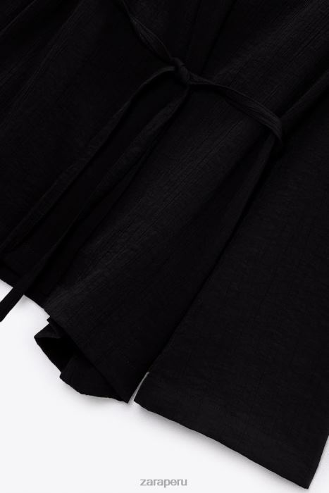 kimono con cuello solapa y manga larga. bolsillos laterales. Cierre frontal cruzado con lazo interior y cinturón del mismo tejido.