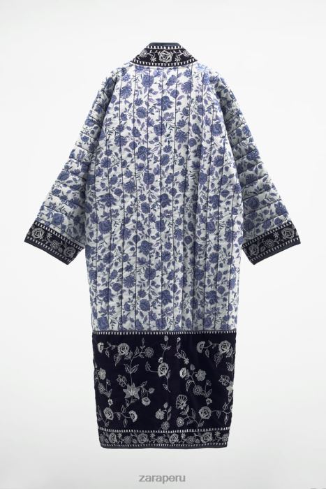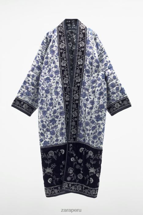 kimono largo acolchado. mangas largas. Bolsillos laterales ocultos en las costuras. Tejido de terciopelo a juego con bordado floral. ribetes con efecto satinado.