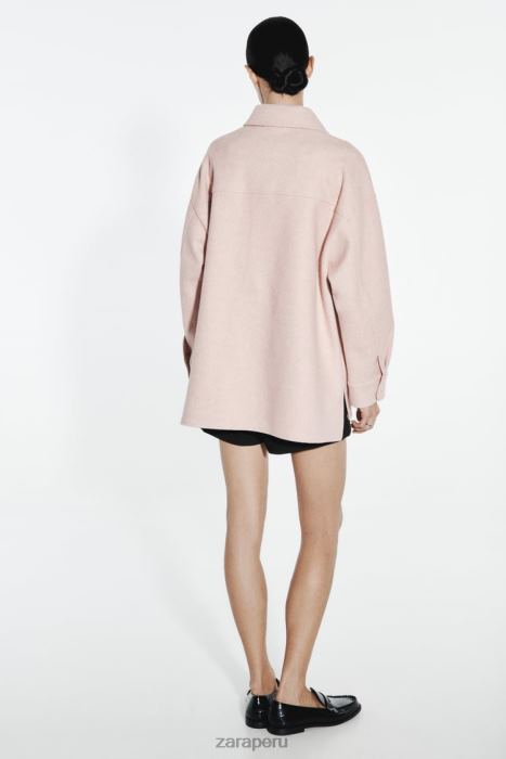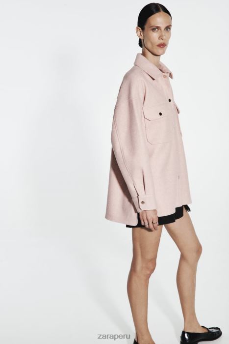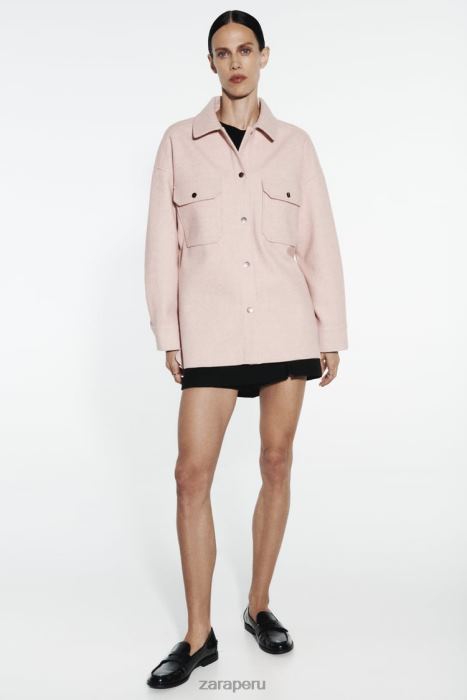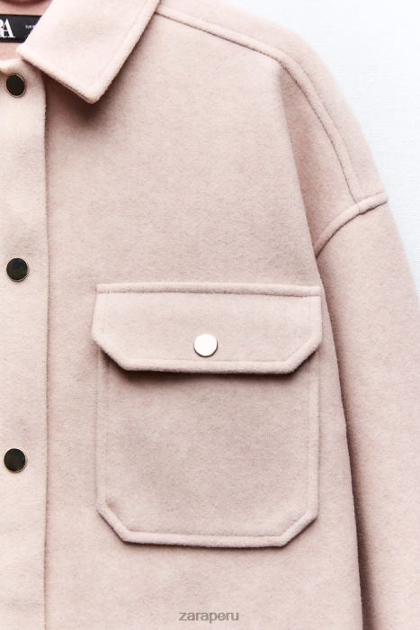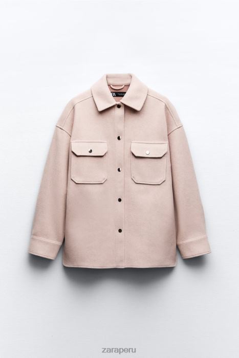 sobrecamisa de cuello solapa y manga larga. Bolsillos delanteros de parche con solapa. aberturas laterales en el dobladillo. Cierre frontal con botón a presión de metal.