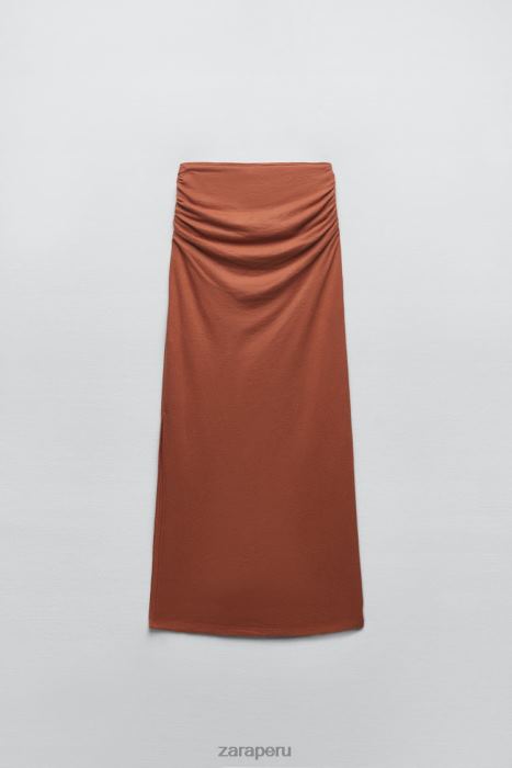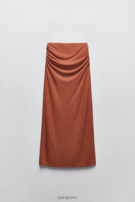 Falda larga de talle alto confeccionada en tejido mixto viscosa. Detalle fruncido lateral. dobladillo con abertura.