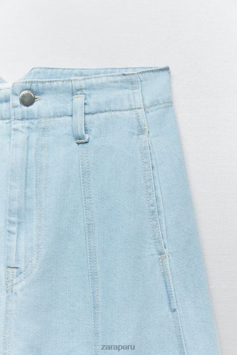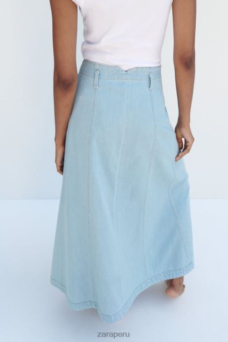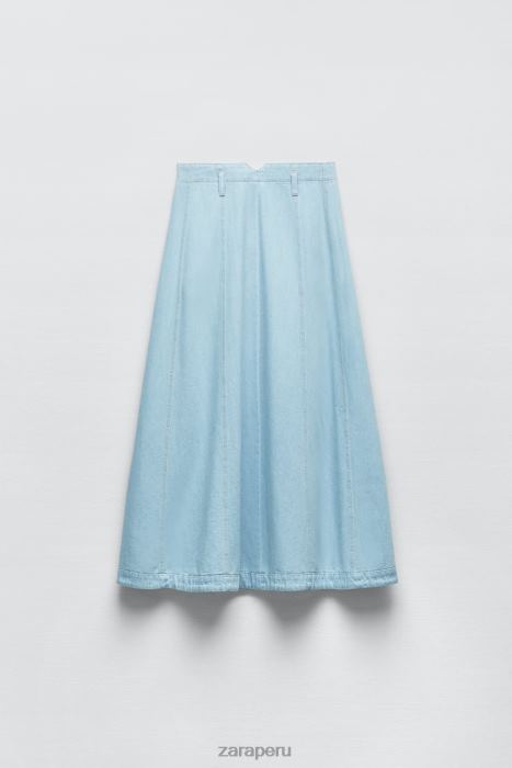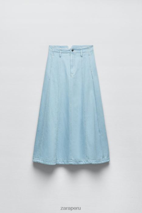 Falda midi de cintura alta con trabillas. silueta de una línea. efecto lavado. Cierre frontal con cremallera y botón metálico.