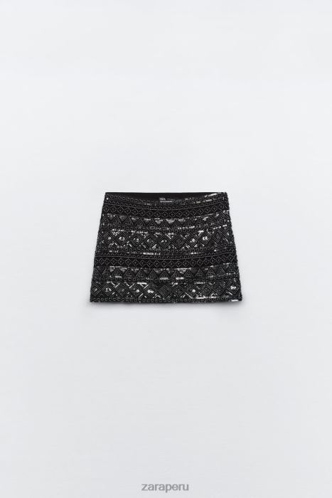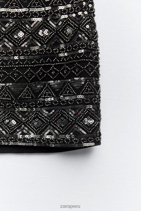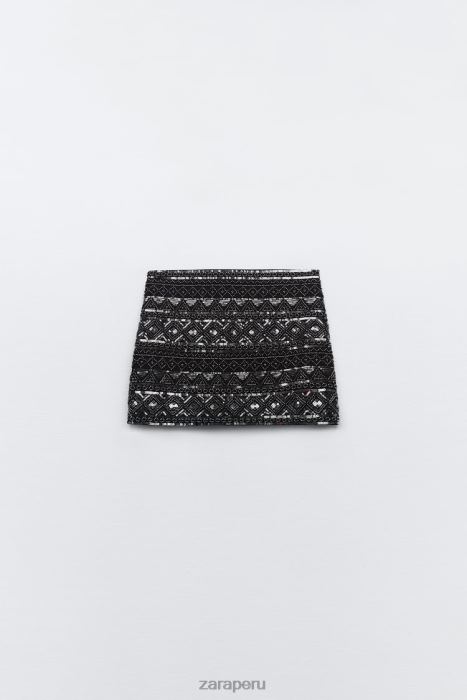 minifalda de talle medio. Detalle de pedrería y lentejuelas a contraste. Forro interior a juego. Cierre de cremallera lateral oculta en costura.