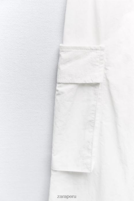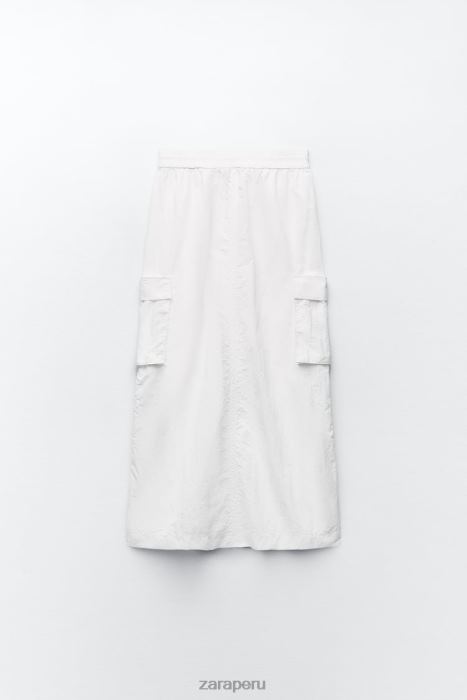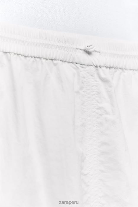 Falda de talle medio con cinturilla elástica ajustable con cordón y tope. bolsillos laterales de parche. Dobladillo con cremallera a juego en los laterales.