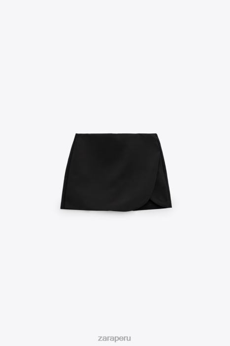 falda pantalón de cintura alta. Autosuperposición estilo pareo. Cierre de cremallera lateral oculta en costura.