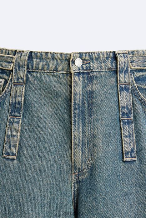 vaqueros holgados. Cintura ajustable con correas laterales. Correas multifuncionales en la parte delantera y trasera. cinco bolsillos. bolsillos de parche con solapa en las piernas. Piernas extraíbles mediante cremalleras ocultas. efecto lavado. dobladillo ajustable con cremallera. Cierre frontal con cremallera y botón.