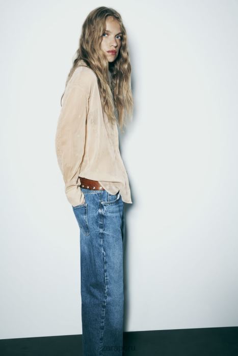 Camisa con cuello pico y manga larga. Detalle bordado tonal. cierre de botón frontal.