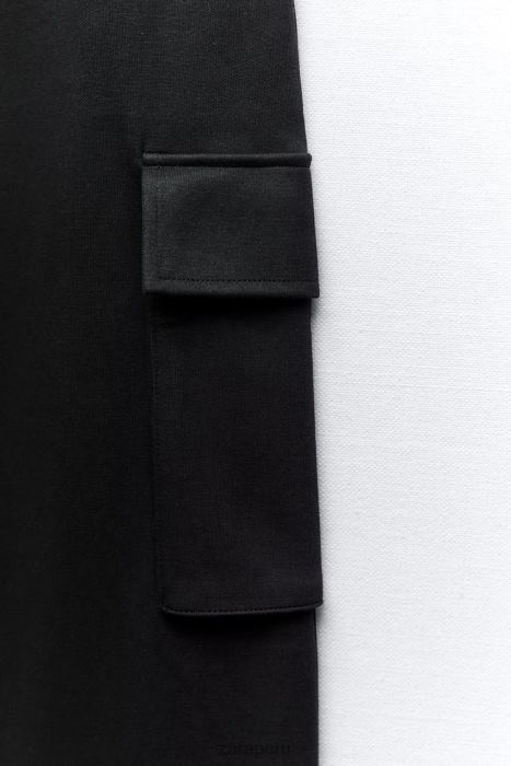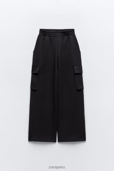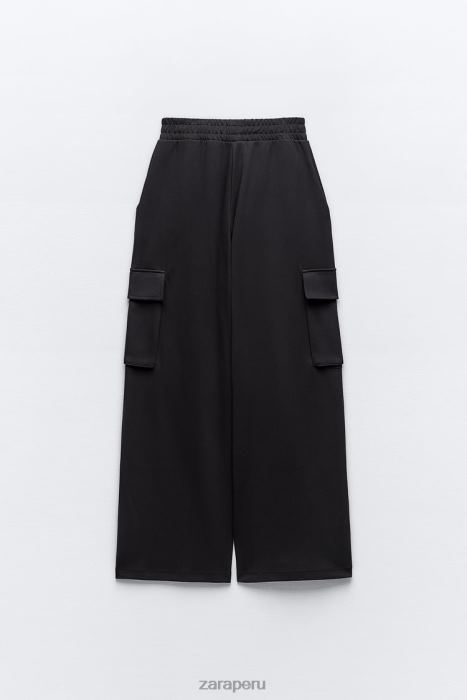 pantalones en mezcla de algodón. Talle alto con cinturilla elástica. bolsillos de parche con solapa en las piernas.