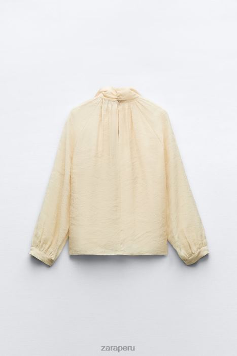 Zara mujer blusa con cuello anudado BDP8J455 ropa beige