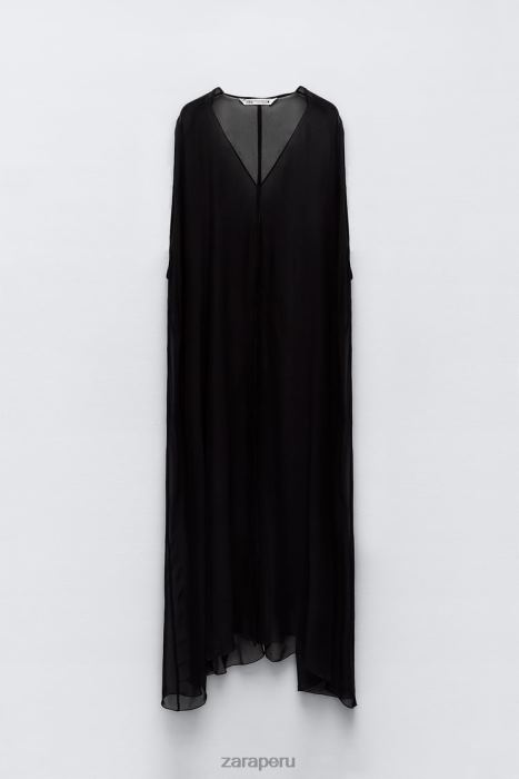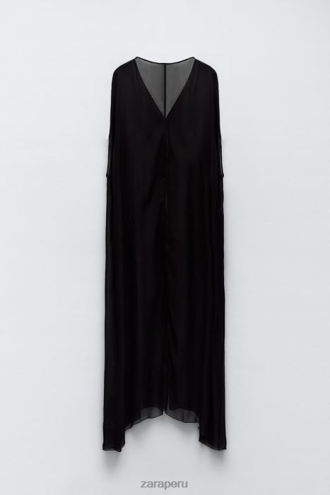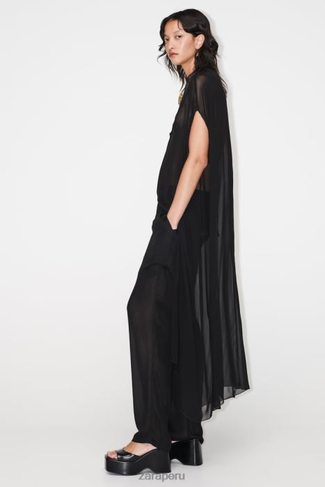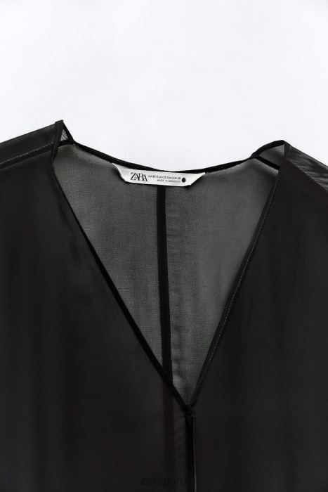 Blusa larga confeccionada en 100% viscosa. escote en pico y manga corta. Bajo asimétrico con abertura delantera.