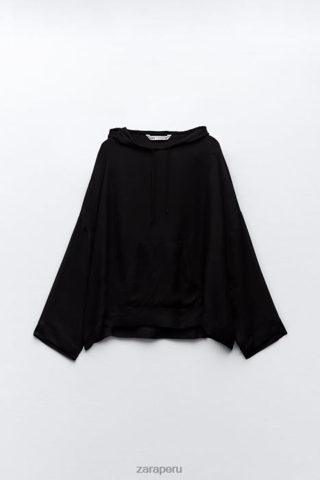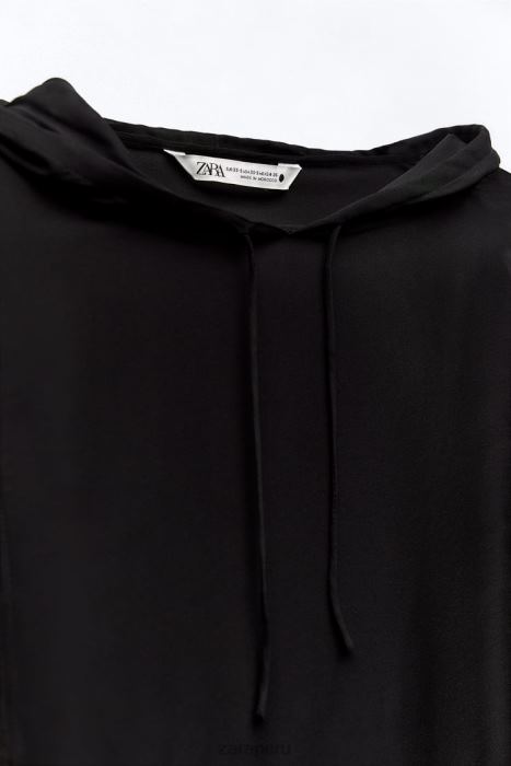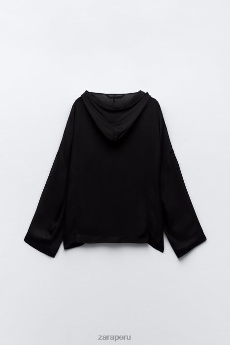 Zara mujer blusa semitransparente con capucha BDP8J430 ropa negro