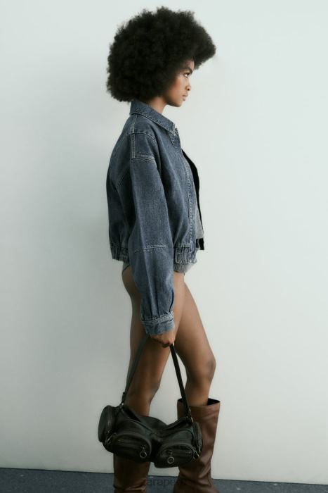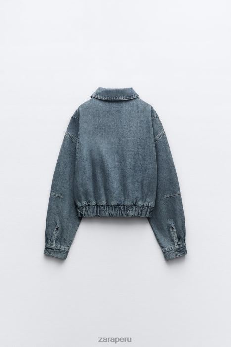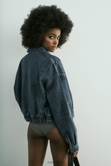 Chaqueta bomber con cuello de solapa y manga larga terminada en puño y hombro caído. bolsillo ribeteado en el pecho. dobladillo elástico. Cierre frontal con botones a presión.