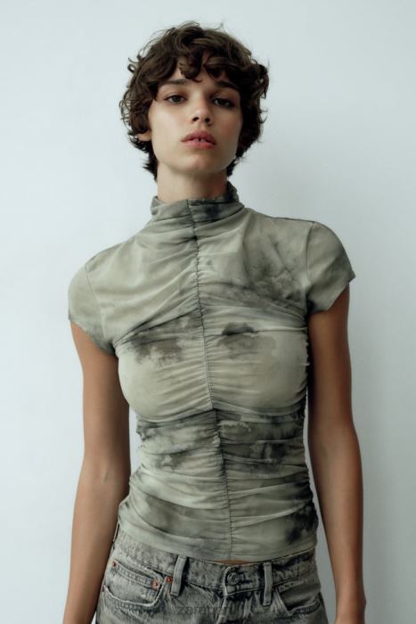 Zara mujer top de tul estampado BDP8J260 ropa verduras