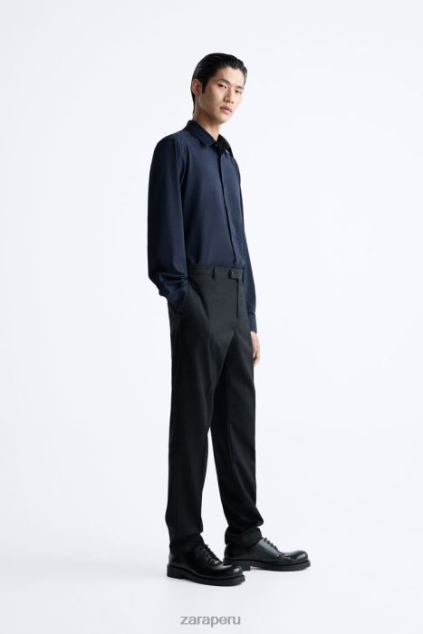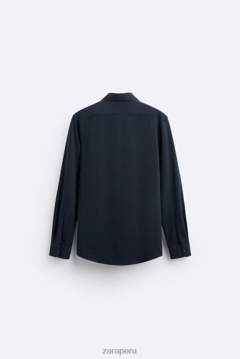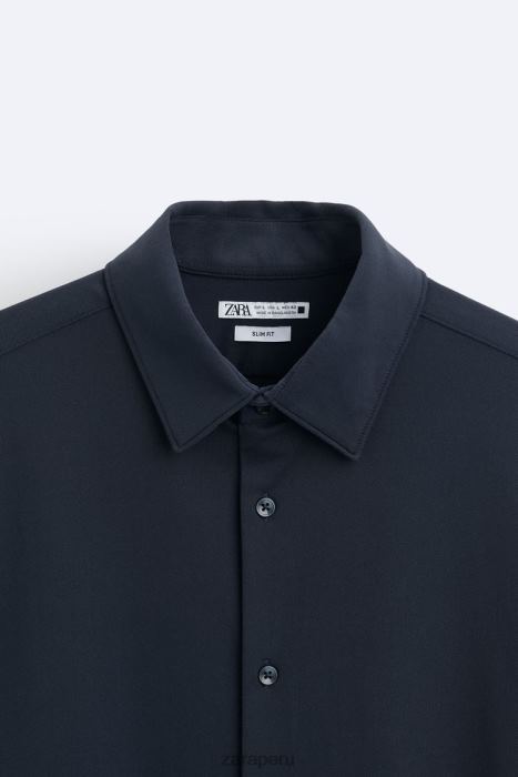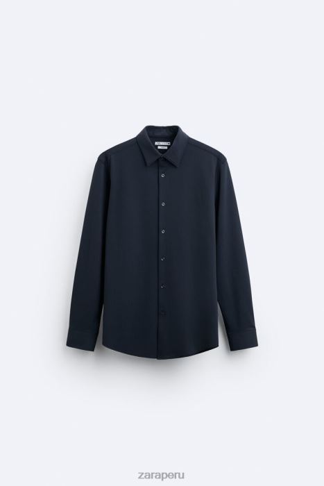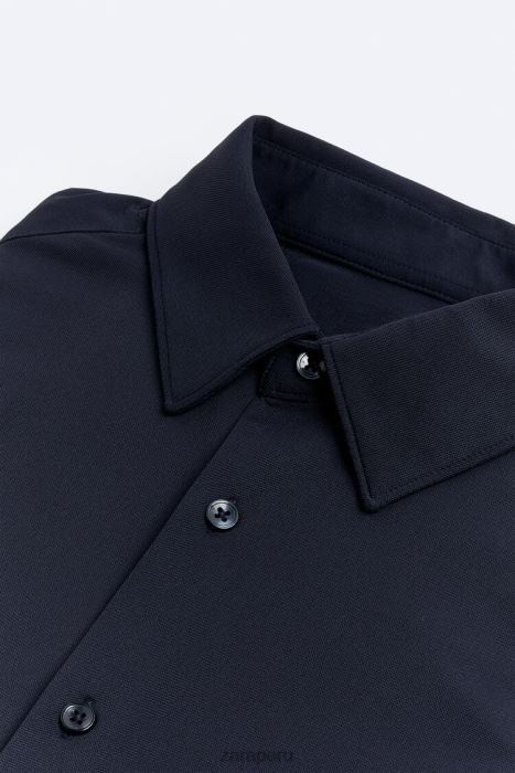 Camisa slim fit confeccionada en tejido que minimiza la necesidad de planchar tras el lavado. Cuello italiano y manga larga con puños abotonados. cierre de botón frontal.
