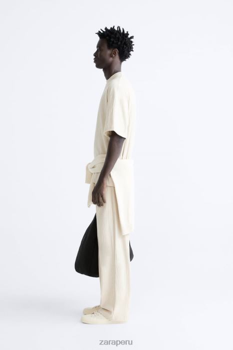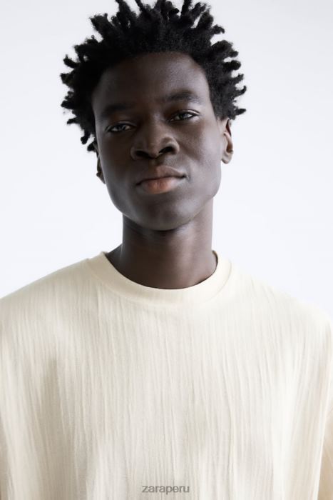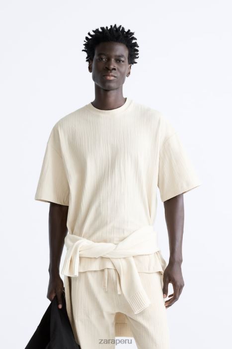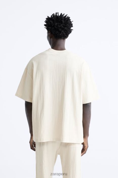 Zara hombres camiseta texturizada BDP8J1201 ropa marrón topo