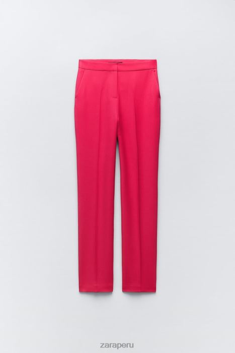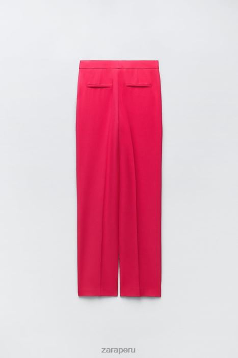 Pantalón de tiro alto con bolsillos delanteros y falsos bolsillos traseros de vivo. pierna recta. Cremallera frontal, gancho metálico y cierre interior con botón.