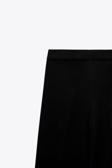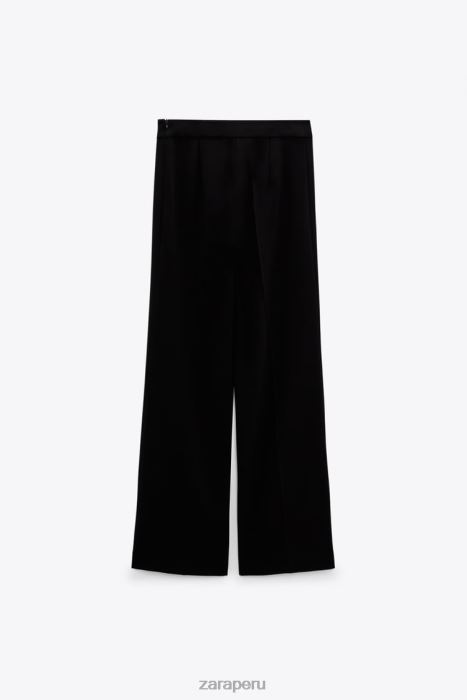 Pantalones fluidos de cintura alta. pierna recta. Cierre de cremallera lateral oculta en costura.