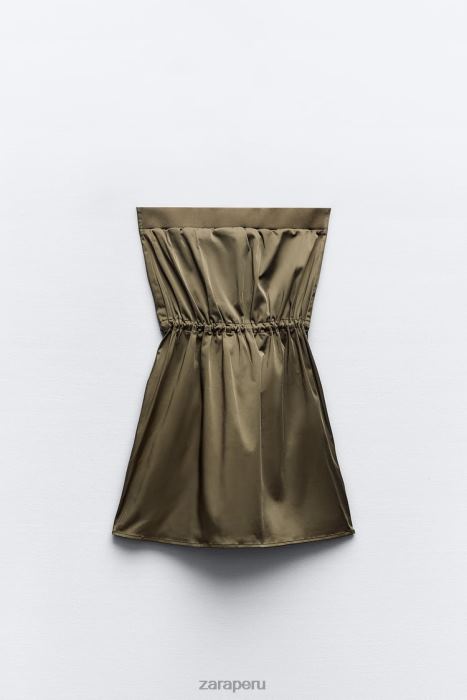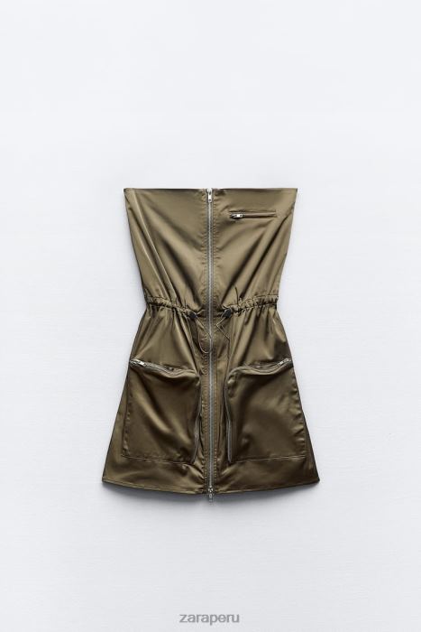 minivestido palabra de honor y escote recto. Bolsillos delanteros de parche y bolsillos de ribete en el pecho. Cintura con cordón elástico ajustable y botones. Cierre frontal con cremallera metálica.